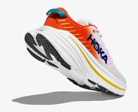 TURBO-CHARGE YOUR STRIDEA maximally cushioned road shoe designed to go the distance, the game-changing Bondi X is spring-loaded with our propulsive carbon-fiber plate. The original Bondi cushioning and lines are here, providing the soft, balanced ride the franchise is known for. The Bondi X fine-tunes the geometry with an extended rocker for greater acceleration, while also delivering smoother toe-offs, thanks to the carbon-fiber plate. HOKA’s extended crash pad acts like a veritable marshmallow, employing the softest foam in our arsenal to date. Paired with a progressive upper with embroidered TPU yarn, the Bondi X will get you there, and then some.